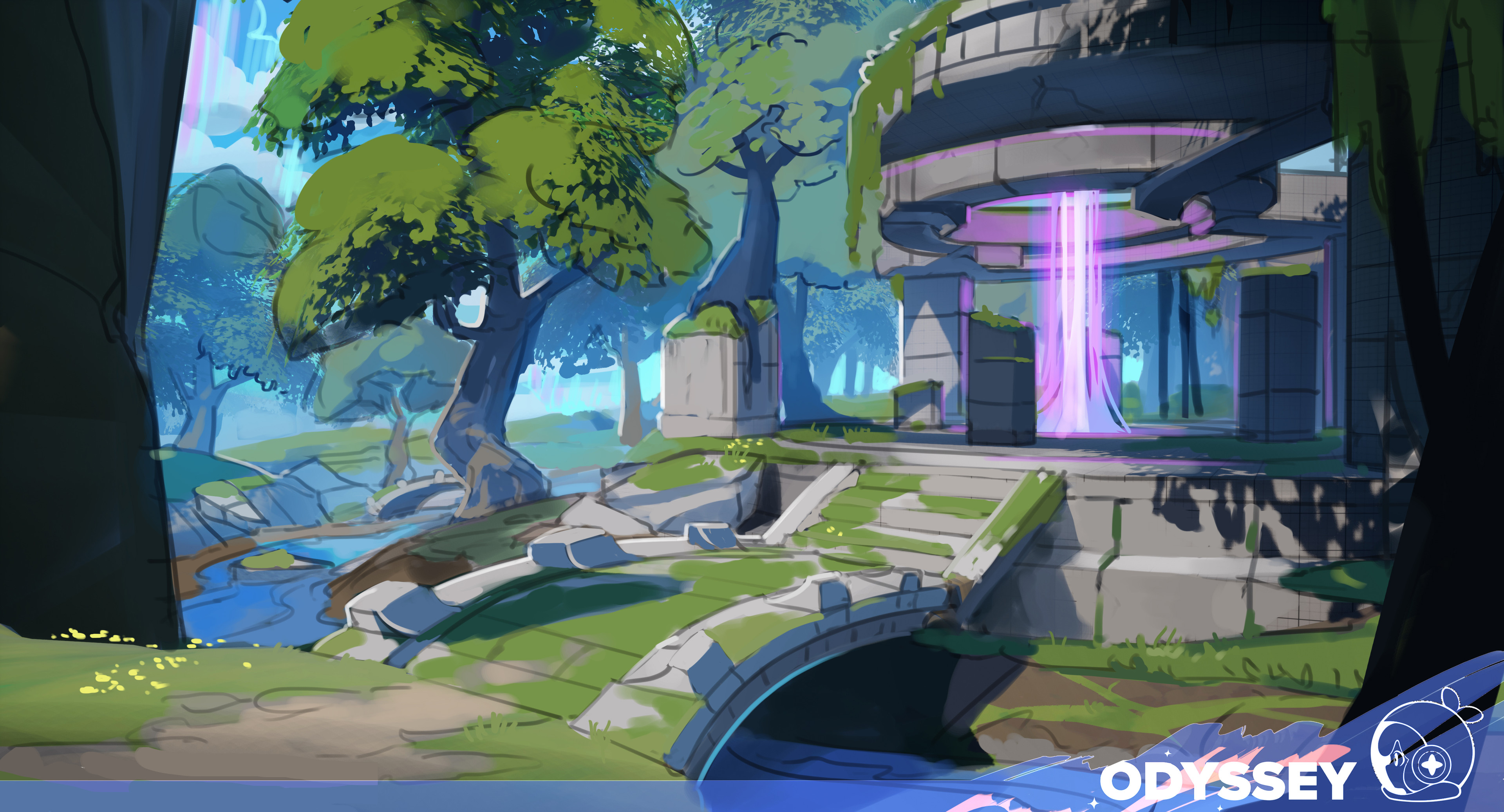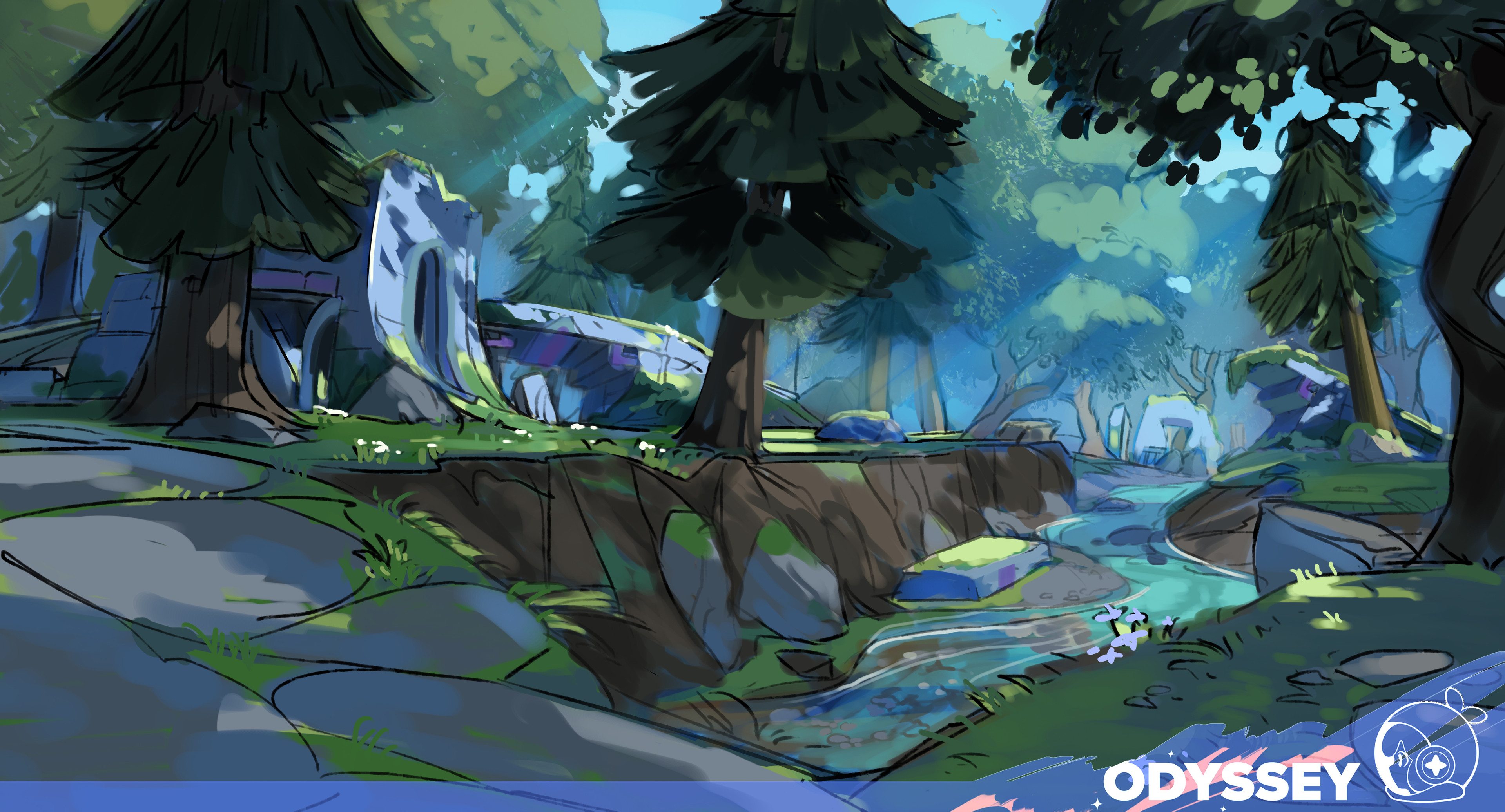 I have had chance to work on many prototypes during my ongoing time as Environment Artist at Odyssey Interactive. I've had permission to share some concepts for one of the prototypes Odyssey has explored. This is a very small selection of the work I made. This one was very much my vibe! But I had to work fast to make lots of concepts in a short space of time.